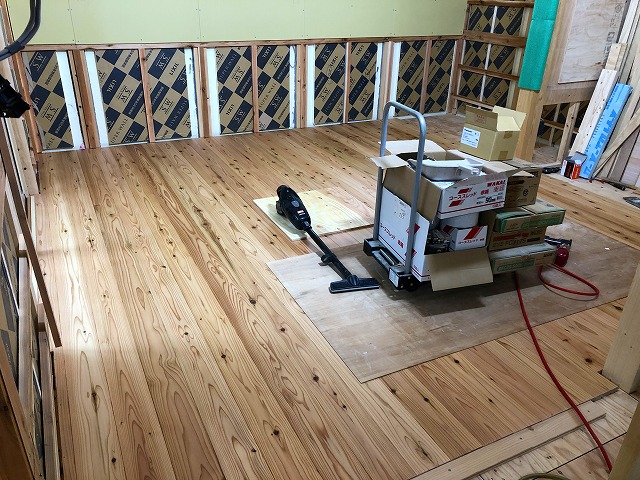 部屋のほとんどが杉のフローリングで