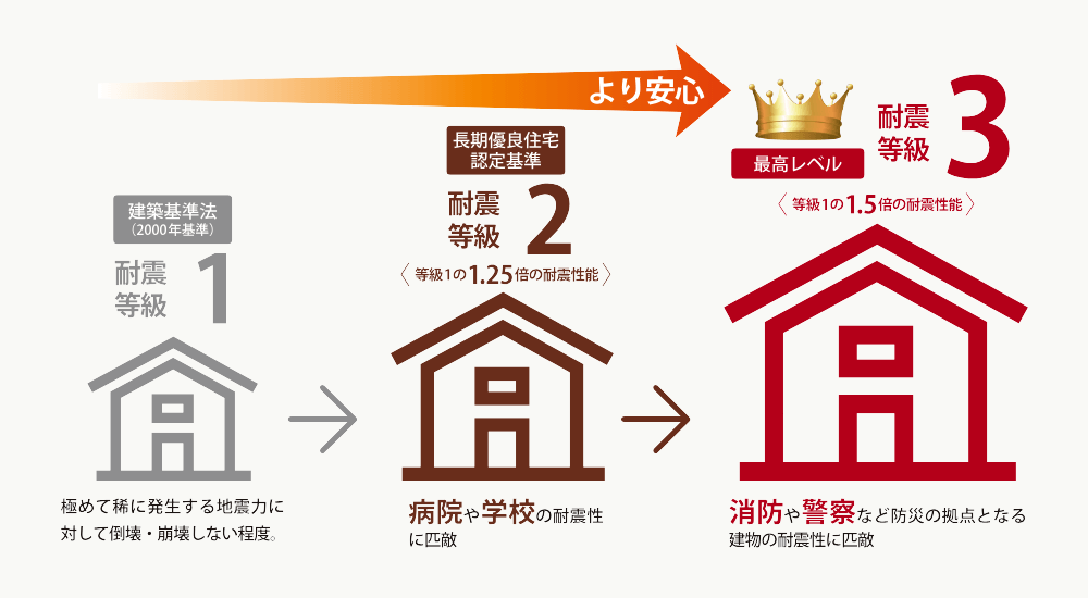 「耐震等級3」の建物とは、消防や警察などの防災拠点となる建物の耐震性に匹敵する耐震構造のことです。